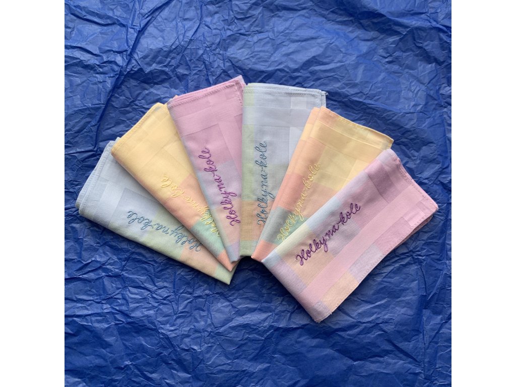 Kapesníčky mají atestaci na kvalitu materiálu a barevnou stálost v rámci normy EKO-TEX100.